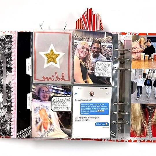 red/white envelope, and the vellum tags from the Main Kit. I didn't identify a specific story to tell during December but left it open to whatever might come up. I decided to play with that today to document some of the text messages and screenshots I've taken/received over the last week or so. Taking screenshots of family text message chains, kids social accounts, emails, etc are a great way to show the technology of our time and bring in some other voices from your life.