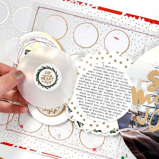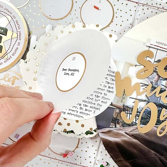 On the outside of the vellum circle I added one of the gold rimmed number circles from the Main Kit. On top of the circle I printed "Dear December, Love, Ali."
