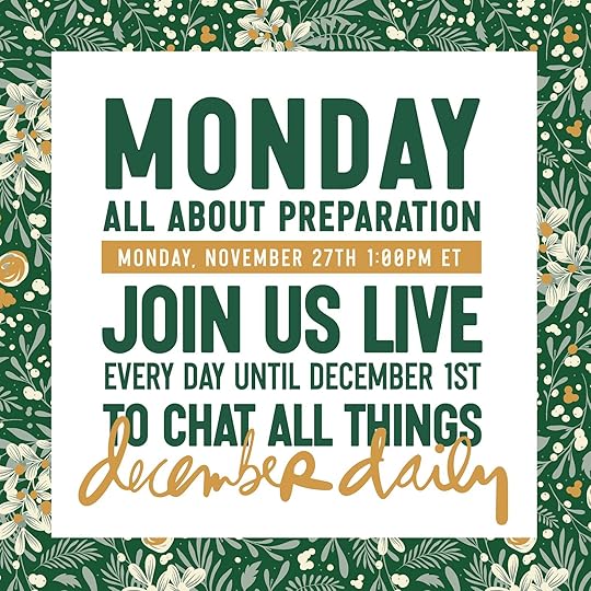 Ali and Lisa will be live on our @decemberdaily Instagram account chatting about a different December Daily®-themed topic each day. These conversations will happen at the same time each day, 1pm ET. All of our conversations will be recorded and available here to watch/listen to at your convenience.