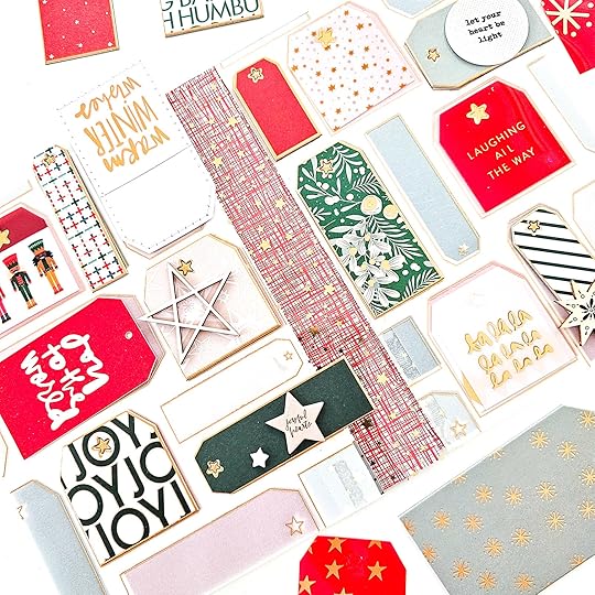 I ADDOREE the abundance of tags in this year’s collection and I can’t get enough of them! I wanted to create a page with ALL THE TAGS (see a pattern here)! I even pulled out tags from the advent calendar to put this one together.