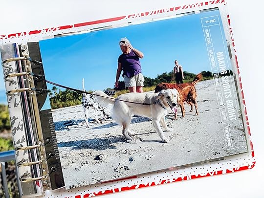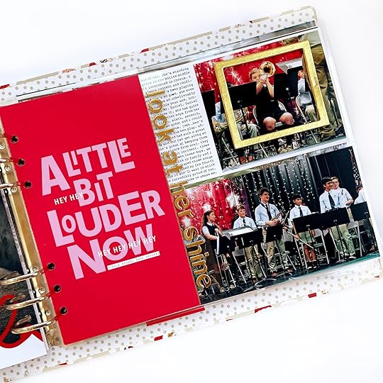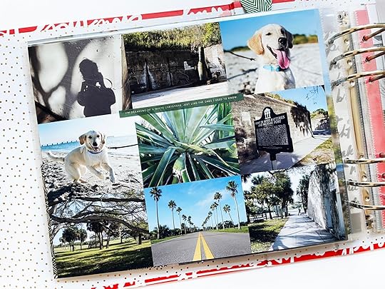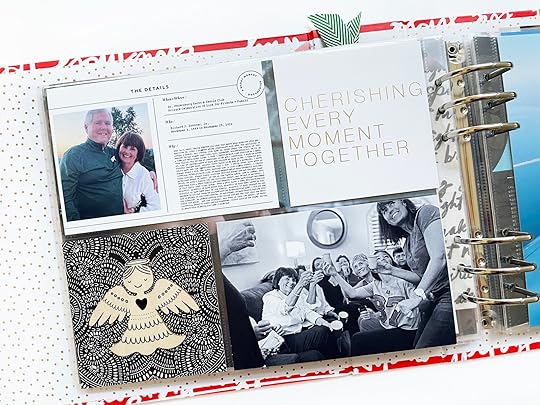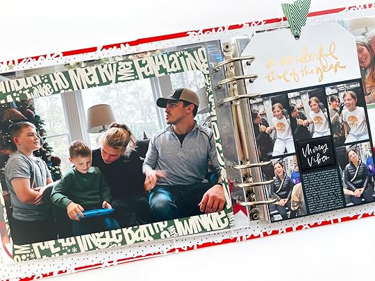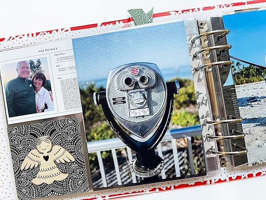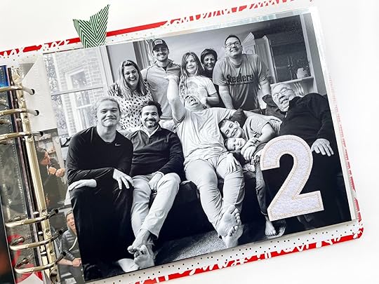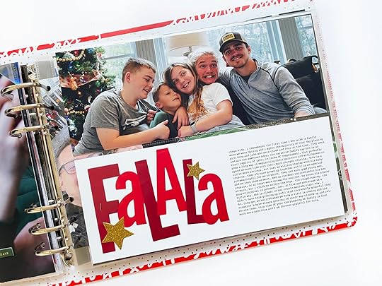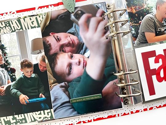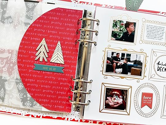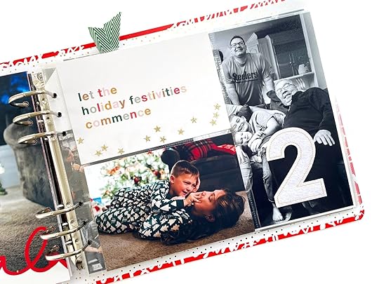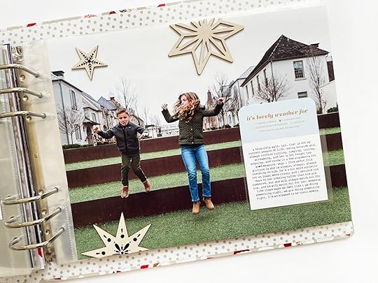 After I punched, adhered and let it sit overnight I ended up trimming this down to 10 inches x 8 inches. When I use this to support my story in December I'll punch the holes (waiting to punch the holes gives me a little more freedom to make additional decisions during the month.