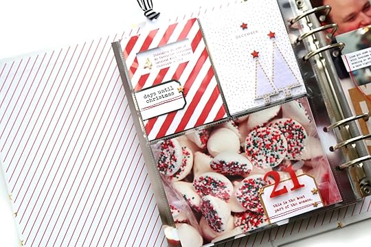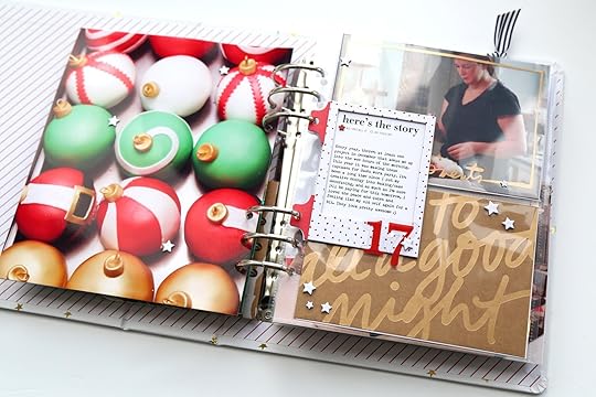 Project #6Christmas Eve! It’s usually a toss up which day will have more photos, Christmas Eve or Christmas Day. Either way, I’m usually looking for a solution or strategy to include lots of photos into my album on these days. For Christmas Eve, I decided to use a 2x2 pocket page protector and the Holiday plastic tag set.