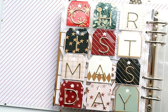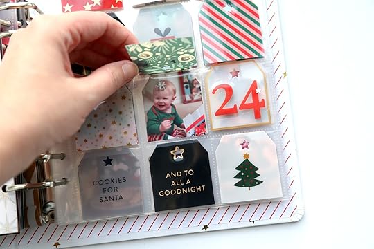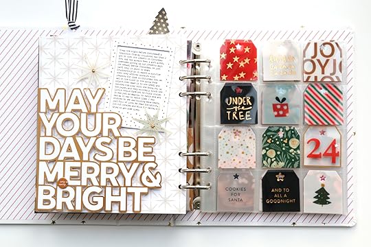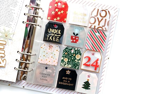 Project #7Christmas Day! I don’t know if I’ve seen this somewhere before, but I honestly don’t remember ever realizing that the 12 pockets of the 2x2 page protector have the exact right number of squares to spell out “Christmas Eve” OR “Christmas Day”. Sometimes figuring out what will go on the back of all those pockets feels a bit tricky. There are so many tags in the holiday plastic tag set that I had more than enough to fill the front and back of the page protector and still had leftovers!