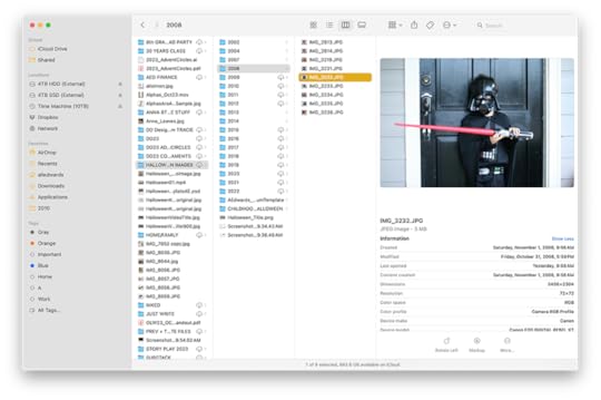 For a project like this I begin by going through my Photos and older Aperture archives to locate the photos that fit the theme. I've never set myself up for success by using tags or other methods of organizing so I most often search by month. In the case of Halloween I was able to search by dates. I drag and drop the images I may want to use from Photos into a folder organized by year on my desktop. This folder will be deleted once I'm done printing out my photos (I can still access the photos via Photos or Aperture if I need them again in the future).