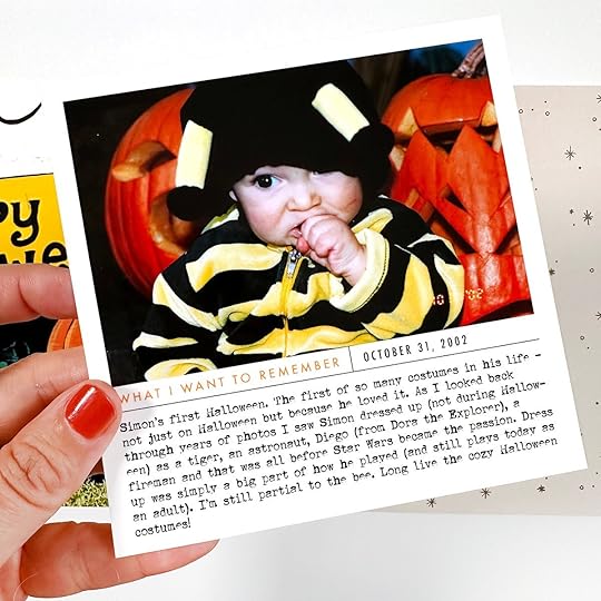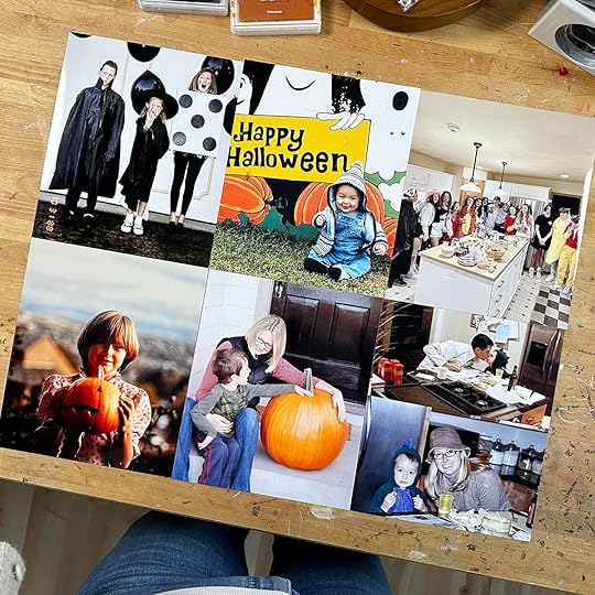 Once I've got all my photos collected and I've established my design formula I'm ready to start printing. This is where I'm at in the process right now. I was able to find a couple childhood Halloween photos so I'm excited to be adding those to the beginning of my album with some random Halloween memories from when I was a kid.