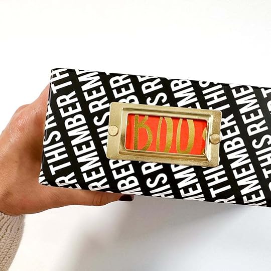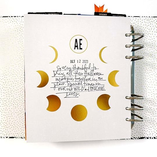 Remember This 6x8 album as the home for my project. I cut up one of the tags from the 2023 Halloween Kit and added it inside the metal label on the spine.