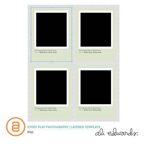 For this project I used the digital version of one of the cards included in the Story Play Photography kit to create a layered template (download available for you below). I love using one card as a repeated element across my spread and detailing a bit about what each photo represents below the photo. This is totally something you could do a couple times a year - collect a series of recent imperfect shots and celebrate them by featuring them all together.