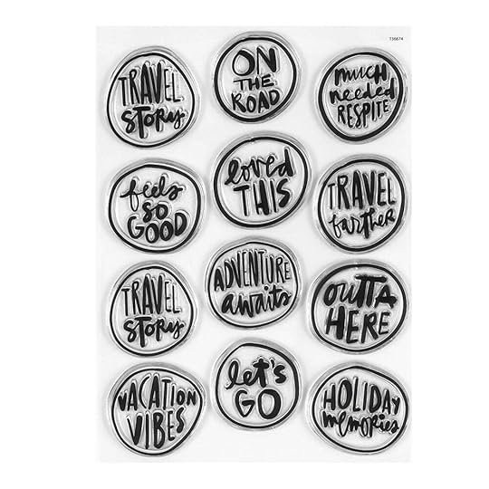 ** Please note this stamp set has a duplicate design of "travel stories" and has been discounted to reflect that. A digital design of an additional messy circle phrase will be given to customers who purchase the physical stamp.