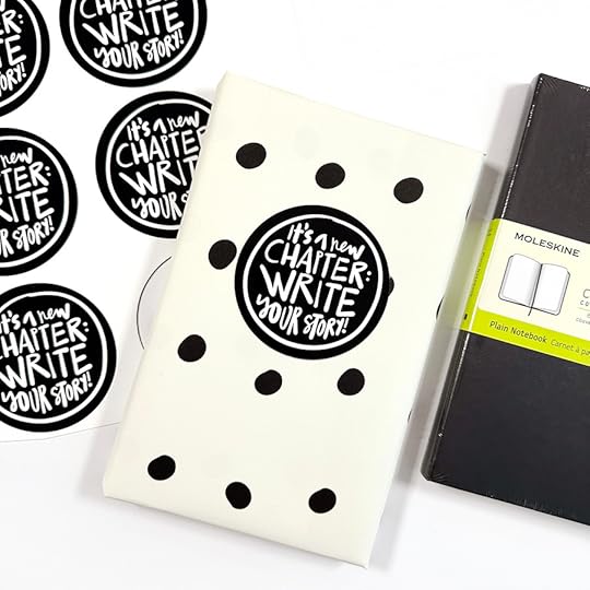 Today I wanted to share a simple download that I've been using to add to gifts during this season. I wanted to get them something that welcomed and honored that they are all starting a new chapter so I decided to get some blank journals (I went with these Moleskines) and made a simple word art circle to add on top of the wrapped journal.