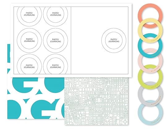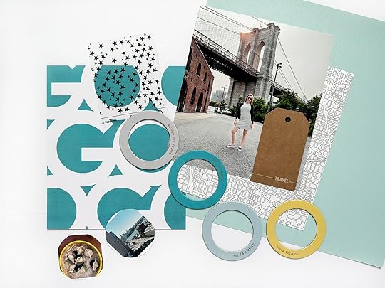 Here come the Circle Chipboard Frames! They are so colorful and fun, and I just need to put them on one page together. In my sketch, you can see that I fit six of them on the 7x8.25 Street Map patterned paper. The top and bottom ones will hang off, but I like that look. Here’s a tip if you like how the first page looks but don’t want to use the Circle Chipboard Frames in a travel theme - you can position the frames so that the parts that hang off (and will get cut off) have the travel related phrases on them! Instead of the Go patterned paper for your second page, use a full-page photo. I’m not sure yet what my story will be here, but I do know that I love the one Circle Chipboard Frame on the “O” in Go. Some story ideas I’m tossing around: