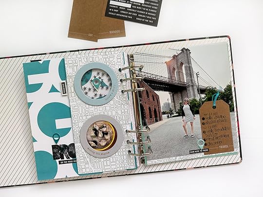The first step was to select, edit and print my photos. I knew that I wanted the photo of me in front of the Brooklyn Bridge to be a full page (I thought of that when I initially planned the project) and then I selected two additional photos to print smaller to include inside the chipboard circles.
