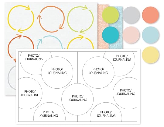 Not only did I fall in love with the arrow circles on this 12x12 paper, but the colors are the best! Of course, I want (need) to cut them out. I’m thinking overlapping arrow circles across 2 pages. I’m thinking photos on top of some and journaling on others. I’d also like to explore adding the insides of the Circle Chipboard Frames as embellishments…perhaps with stamping on them. The arrow circles first reminded me of the cycle of life, and I was thinking that photos of someone (me, my son, my dad, etc.) through the years might work. Other ideas might be: