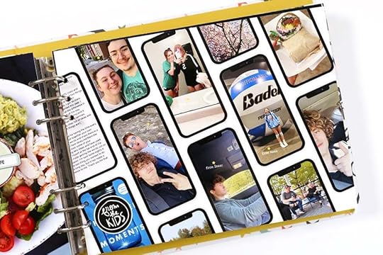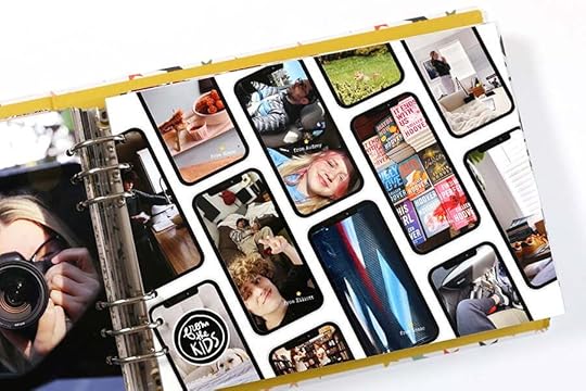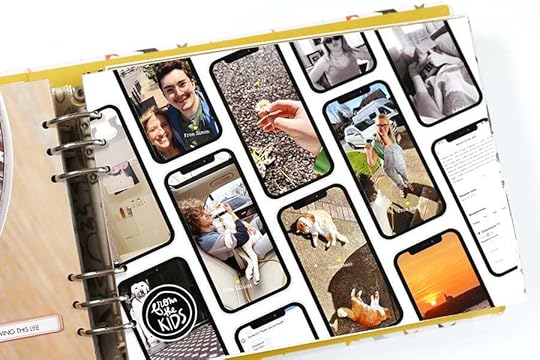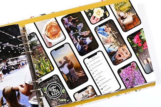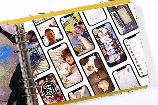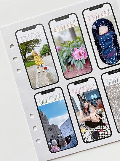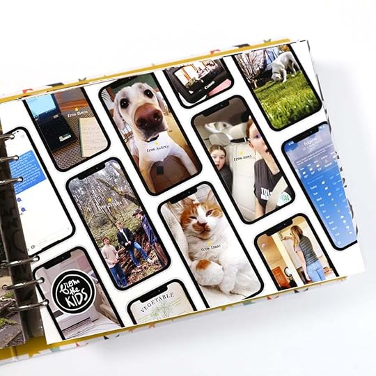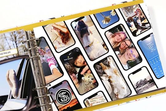 Here's the template I ended up using for the "from the kids" page. I love being able to see their full photos (vs. in pockets like I was thinking originally) and love the nod to the technology that delivered that content to me. I filled in the additional phone spaces with extra photos from my day or screenshots.