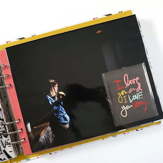 One of the things I did different this year was cut up some 6x8 page protectors to create 3x4 pockets to hold sentiment cards from my stash. As you'll see below I added those to a number of my full page photo enlargements (ones that are inside a page protector). I loved adding in some cards from my stash - you could easily add more writing to the back or use regular journal cards if you had additional writing you wanted to do.