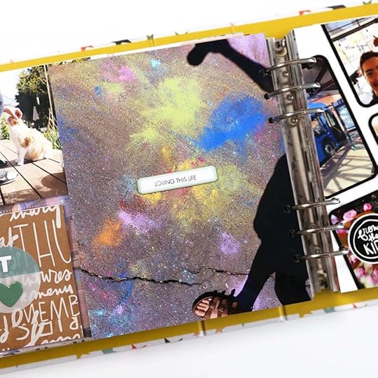 On the back of each of those ephemera pages I added a full page photo with a chipboard label and "loving this life" stamped.