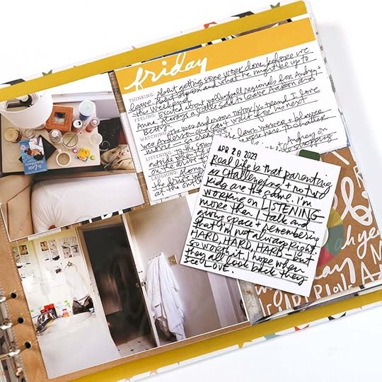 I really wanted to celebrate + elevate the everyday by focusing on photo enlargements and letting the photos sing their own songs.I love the mix of typed + handwritten journaling. Remember that all the typed journaling comes directly from my blog posts during the documenting week. I simply copy + paste what I wrote and add that into my album. Handwritten pieces include some that were done during the week itself and others that I wrote as I was putting the actual album together and some of that writing is more reflective vs. in-the-moment. I love that combo of the two. This project is a labor of love from the documenting to the printing to the embellishing. Let it take its time in coming together. Remember that you get to choose the right level of embellishing for you in this season of your life. With this project I tend to do "light" embellishing (compared with a project like December Daily®) and that works for the way I want to tell the story of my week. I am so, so, so happy that I used my DSLR camera for this week. It re-ignited a love for me and I feel grateful to this project for reminding me how much I love looking through that lens. I loved diving in to my stash for some sentiment cards and word phrase stickers. Definitely one of my favorite parts of my project this year was inviting our teens to add their voices via photos texted to me each day. I had set up a page for that during our Prep Day but when it came down to documenting those photos I decided I wanted to do something different and used one of the layered templates from this set. I love how it turned it especially since those were all phone photos.