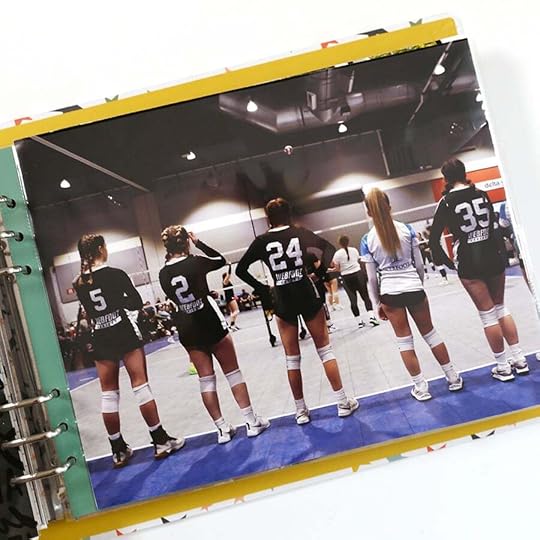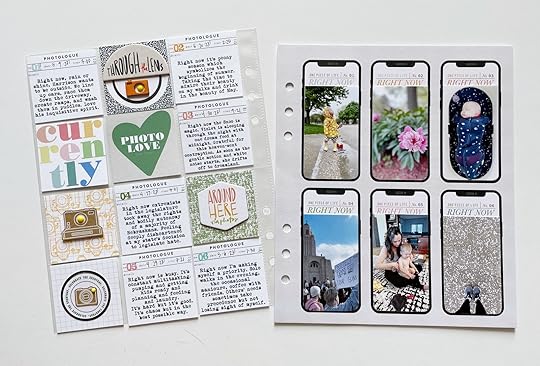 On the 6x8 phone paper, I printed six photos to fit inside the phone shapes, rounding the bottom corners. To finish the layout I used a 3x8 divided page protector to include two more photos and two journal cards as well as my journaling.