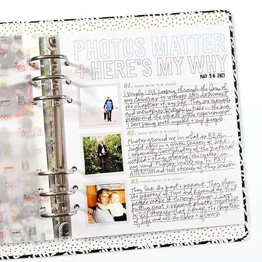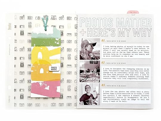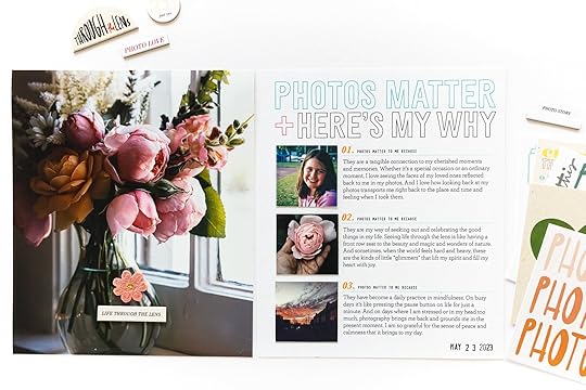 I loved the invitation to document why photos matter to me using this paper from the Story Play Collection Photography Mini Kit. I started by typing out my words and printing them on the "Photos Matter" paper. (