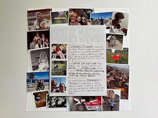 Photos ground me in what is real - right now in a given season of life. I especially love photos of the natural world and things growing (the cycles) in my yard. Photos invite me to pay attention and tell stories of this season.