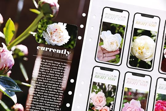 Hi friends, Kelly here. I’m excited to share the beginnings of how I’m documenting Photography week in my Story Play album, using the ‘Right Now’ 6x8 paper and a few of the 3x4 journal cards. Since flowers & progress in the yard are what’s happening around here right now I decided to document that.