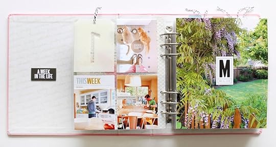 I like to look at my products & album before the week begins and give myself a basic set up for the album. This allows me to get excited about the project and start thinking about the types of photos & stories I want to collect. I typically do this while assembling my scavenger hunt list so that I know I have a plan to include all of the things I collect.