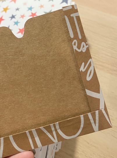 I wanted to use the Kraft pockets from the main kit in my album, but wanted to make the pockets less bulky before taping into my album. I ripped open the back of the pockets and cut some of the excess Kraft off the back, while still making the pockets functional once attached into my album.