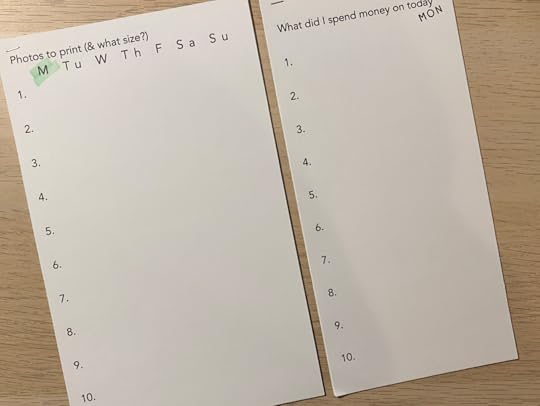 Lastly, I prepped a couple worksheets to carry with me during our week of documenting. One is to make notes on the photos I want to print. I plan to send out a print order at the end of the week to a print company. Then my photos will be on a lighter-weight higher quality photo paper than what I have at home, again helping with bulk in my album.