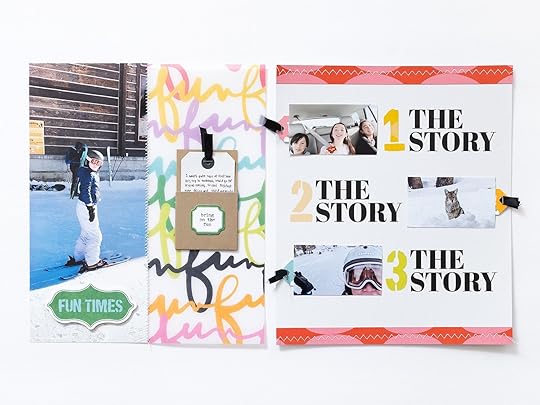 I started with the 6” x 8” paper with the numbered “The Story” titles on it. It’s a perfect starting point for telling a few stories! Instead of adding writing to the rectangles, I decided to print photos and put those on top. These photos are sized to slightly larger than the rectangles on the page at 1 1/2” H x 2 5/8" W.