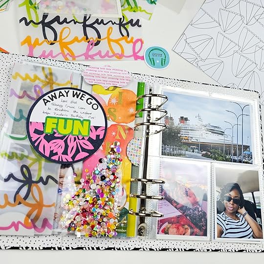 Then, because October is such a special month for us, as my son's birthday is at the very end of the month - FUN!!! -I thought it fitting to do a “title page to kick off the spreads which celebrate his 3rd birthday- this commenced with a Disney Cruise, followed by a week of celebrations. One of his favourite phases is, “This is So Fun!” - so this die cut piece was perfect for it!