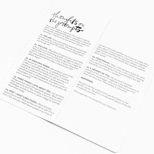 Our Pieces Of Life projects come in a fun notebook with the prompts already outlined for you.