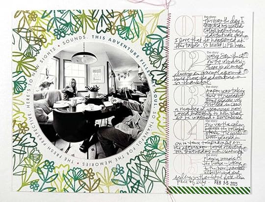 This project is a two-page, 11 inches wide x 8.25 inches tall project that will live in my 2025 story album. I will be creating on the back of the vellum within the album adding another story later this month.