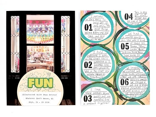 Hi friends! Jill here. When I saw the papers in the Fun Storyteller Kit made from Ali's mixed media, I knew it would be perfect for telling the story of my most recent crafty retreat. Perhaps you also have a crafty retreat, get together, or crafting related story to tell? It could even be a story about your craft room or supplies!