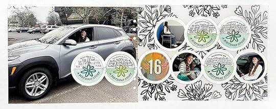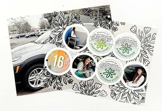 Then, I punched two circles out of white cardstock to hold my journaling. I only needed to add a few words for each memory because these stories are documented elsewhere, this was just to collect the main idea for each one.