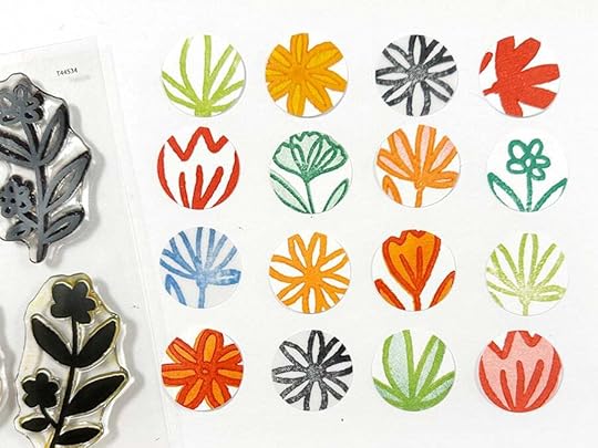 This month's Stamps Are Fun set features a bunch of flowers with filled in versions and outlines.