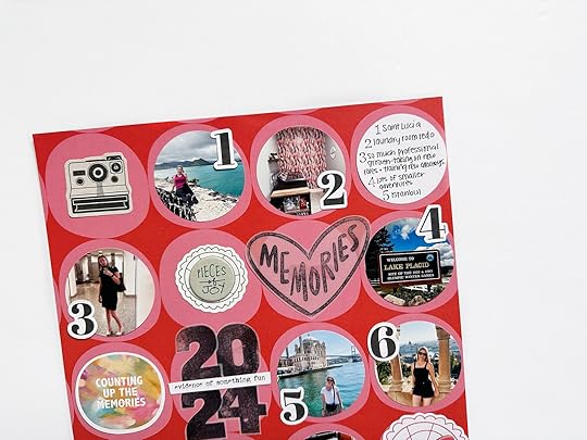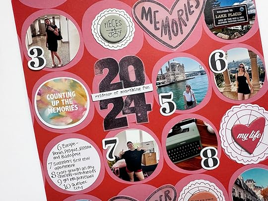 I absolutely love how this spread came together! This will be the final page in my 9x12 stories album that held stories from 2021 - 2024. I’m super happy to have this recap of the year all on one page, and it was so much fun looking back through the photos + memories of the year to select 10 big moments to document.