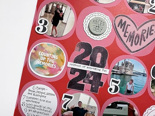 Then, I had to pick my story idea. Because it’s the new year, I am enjoying wrapping up my 2024 documenting, so I instantly thought of creating a recap of some of my favorite memories from the year. These memories have all be scrapbooked in more detail elsewhere, so this page was focused on just the highlights.