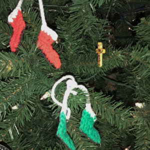 What’s on your tree? Some of my favorite ornaments are some little skates with paper-clip blades my grandmother knit before her last Christmas, an ancient string of popcorn I strung with a girlfriend back in high school, and a tiny carved cross I picked up one Christmas season in Nicaragua that reads “Paz con social justicia.”