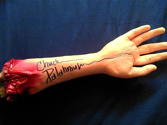 There also happened to be a reward for the people who asked a question. It was a rubber arm that looked like it had been severed from a body just below the elbow. And it was signed by Chuck. They were thrown expertly and a surprising number of them were caught, always to a sincere round of applause.