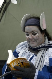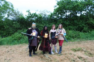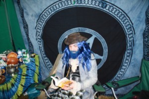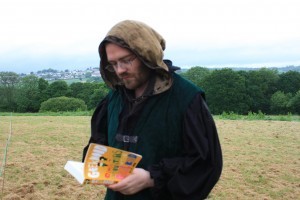 As it turned out, Sebastian was the name of Paul’s character. We knocked on his tent and there was a bit of rustlinng inside, before the front flap opened and a very tall man, wearing a cloak and dressed in a Renaissance costume made from black velvet, appeared. Unfortunately, he had a bit of a hangover (they’d been on the Mead the night before) and wasn’t up to showing me the ropes just yet. He threw some costumes at us and said the best thing we could do was just mingle and chat to people and we’d get the hang of it. As we wandered off into the camp, he called out: “Oh – and be sure to chat to Brith, the Dwarf.”