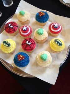 What next? Ah, yes – cakes. More specifically: cupcakes. Shopping for cupcakes isn’t something I normally do and, after trawling the ‘Net and seeing the price-tags that come with professionally-made cupcakes, I resolved to make my own. Which, I realise now, was a little optimistic; I can cook a bit but, living on a boat, my facilities are a little limited. But, as I was researching recipes (the Banoffee ones looked good), I stumbled across the website of a local lady who makes them as a supplement to her income, so I rang her. Brilliantly, her prices fitted my budget and I ordered 60 superhero-style cupcakes, to be delivered to me on the Monday morning.