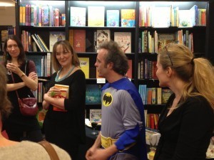 Back on the 5th floor, things were starting to rev up; people were arriving and hands were being shaken. After being signed in by the lovely meet and greeters, I managed to collar Darran from Northallerton Waterstones and have a chat with him; lovely chap – and I’m hoping to get to his store in the summer. My agent, Jenny turned up, Jane and the Stripes Gang appeared and we sort of grabbed a corner of the room and huddled. There were lots of faces appearing; some I knew and most, I didn’t. One face that was particularly welcome belonged to Paul Black of ex-Stripes fame. Hadn’t seen him for ages and it was so lovely to have someone with his tongue firmly in his cheek in the room.