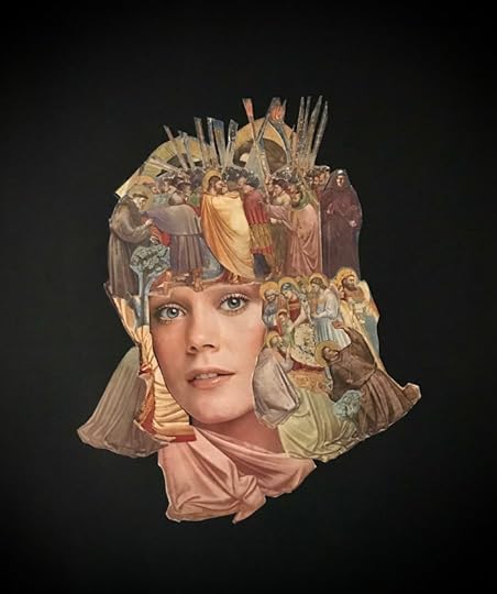 Eva Lake, Giotto Helmet Paper collage 25.5 x 19.5 inches 2025