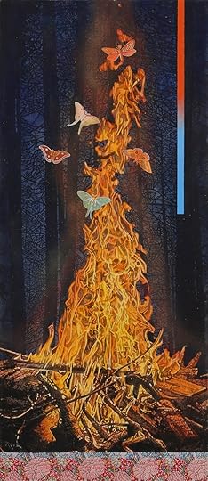 Dancing in the Flames, 2025, Acrylic on raw canvas, 28 × 12.4 in.