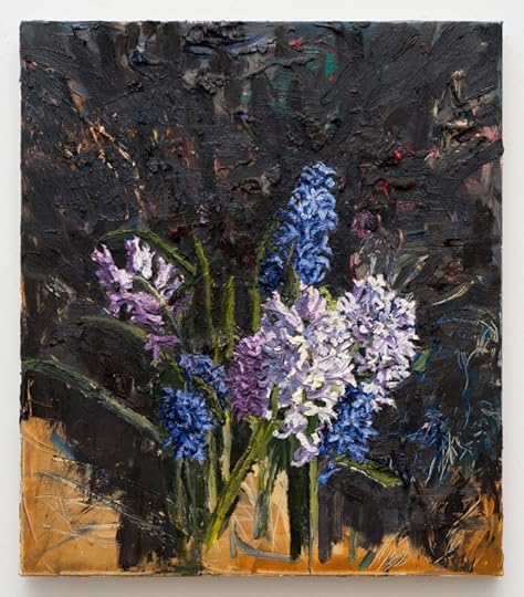 Cracks in the Pavement offers a glimpse into nature’s quiet cycles and beauty, often lost in the urban thrum of New York City. In Burg’s newest paintings, blue chicories push through the earth, wildflowers bloom in winter, then wither—making way for spring’s pink and lavender buds. The inevitability of impermanence is layered onto the canvas, with each painting titled after the street where the artist encountered the flower during walks to and from her Brooklyn studio.