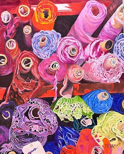 Joyce Weidenaar is a painter and monoprintmaker living in New York City. She began pursuing art ten years ago after retiring from a real estate career. Her works have been seen in solo and group exhibitions, and in private collections. Her paintings are rendered realistically but with unusual framing, bright colors and often a bit of whimsy. Her prints emphasize texture and are purely abstract. Joyce is a member of the National Association of Women Artists, Pleiades Gallery, The Art Students League of New York and the West Side Arts Coalition. Her paintings and prints are viewable on Instagram (@joyceweidenaar) and on her website (http://www.joyceweidenaarartworks.com). Her gallery talk at the Port Washington Public Library can be seen here. In addition to her art endeavors, Joyce is an avid ballroom dancer and skier.