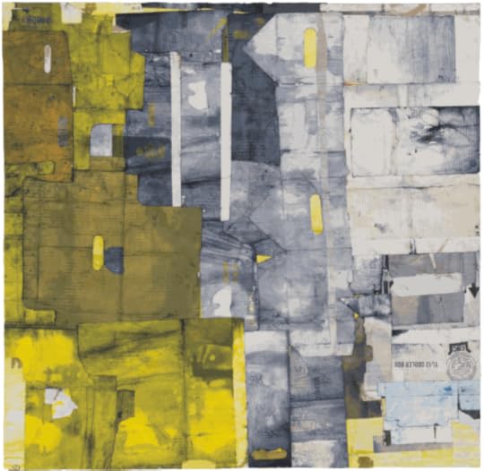 JODI HAYS May/December , 2022 Dye, and cardboard collage on wood strainer 45 x 46 in. (JHY0007) Courtesy of Susan Inglett Gallery, NYC.
