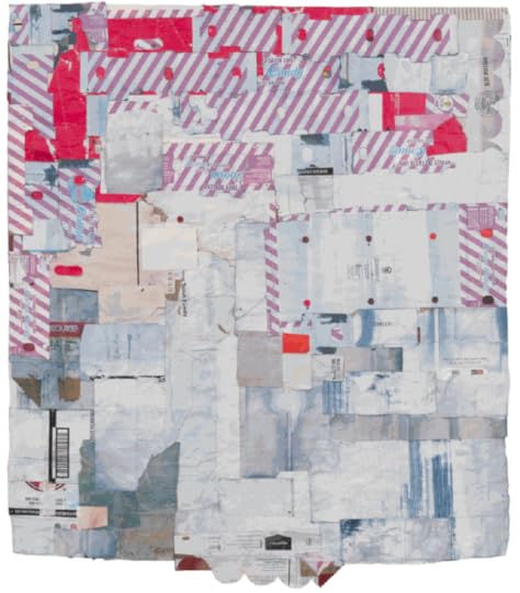 JODI HAYS Meridian, 2022 Dye, paper, ribbon and cardboard collage on panel 24 x 30 in. (JHY0006) Courtesy of Susan Inglett Gallery, NYC.