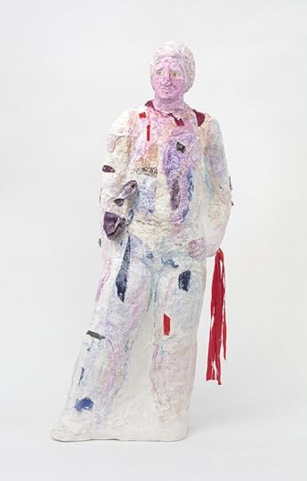 Untitled (self-portrait), clothing scraps, plaster, plaster gauze, fabric collage, zipper, watercolor, 23”H x 14”W x 16”D, 2022
