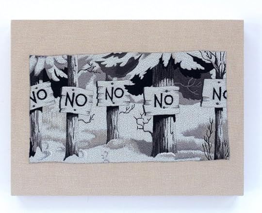 Peter Frederiksen, Massey Klein Gallery, no-no-no-no-no, 22-2022 Freehand machine embroidery on linen, 9 x 12 inches. Image courtesy of Massey Klein Gallery and The Artist.
