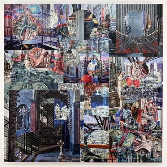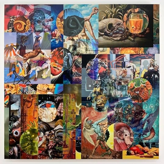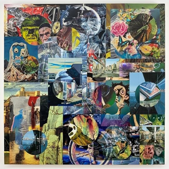 Jeff Gibson, Untitled, 2022, decoupage on wood panel, 24 x 24”.